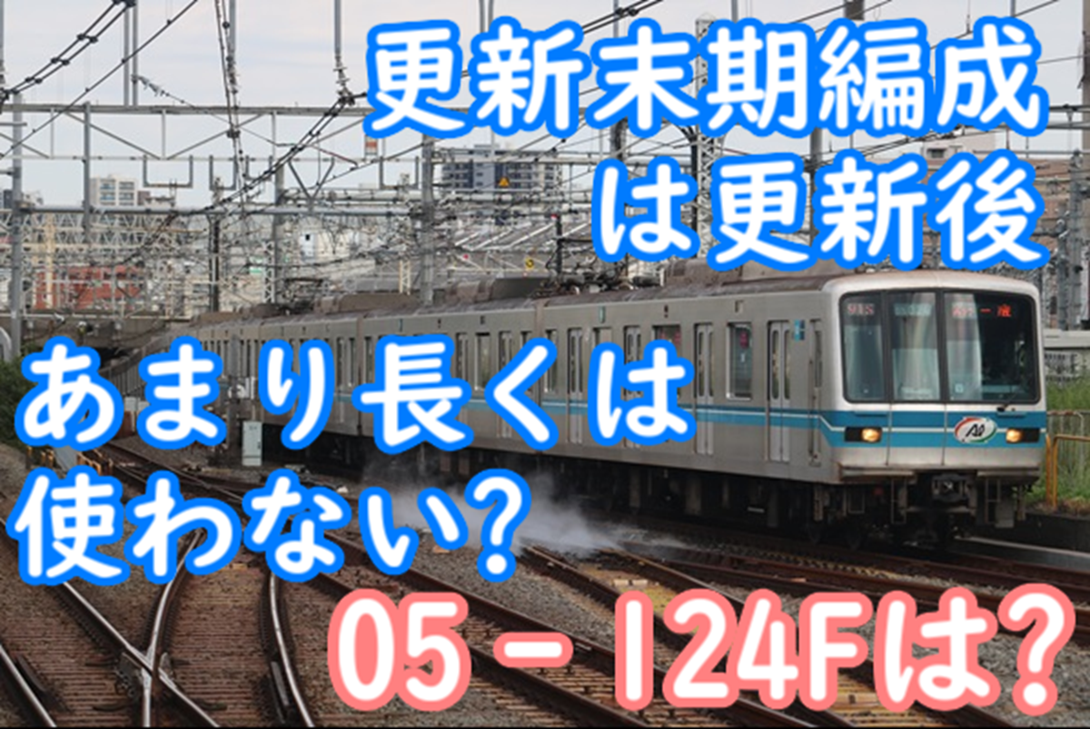 先日、05N系を除く、ノーマルの05系最後のB修施工車である05‐124FのB修が完了しました。05‐122F~05‐124Fの3編成はコロナ禍の時期に更新が見送られていたこともあり、そのまま廃車になるのでは?という噂もありましたが、無事に更新が完了し、当初の予定通りに05‐114F~05‐124FのB修が完了しました。しかし、05系のB修は2012年~2024年に渡って計12年で行われてきており、B修施工車齢も車齢21年で更新施工された05‐114Fもいれば、30年で施工された05‐124Fもいます。このことを見ても分かる通り、05‐124Fは高齢更新となりました。メトロの更新は営団時代の理想的なサイクルとしては24年B修→36年にC修→48年廃車という一つの指針があります。この指針から05‐124Fは約6年遅れて更新が行われました。どうしても工場のキャパや営業車両の確保の観点を考えると、更新時期に差が出るのは仕方のないことではあります。しかし、更新が遅れたからといって、遅れた編成が他の05系よりも長く使うとは限らないかもしれません。それはこれまでの廃車の状況から見ると分かる通りです。今回は05‐124Fが更新後あまり使われない可能性について考えてみたいと思います。